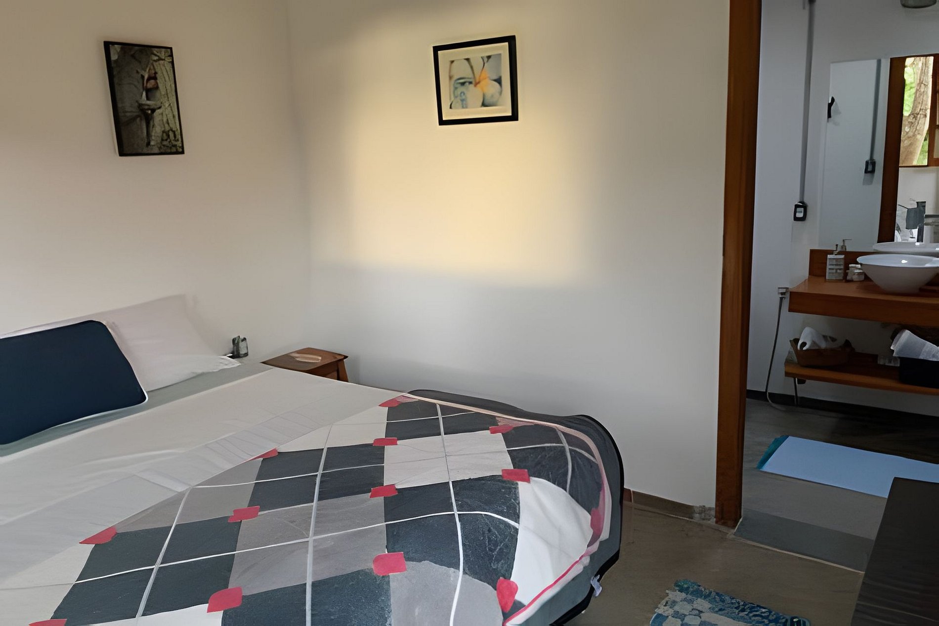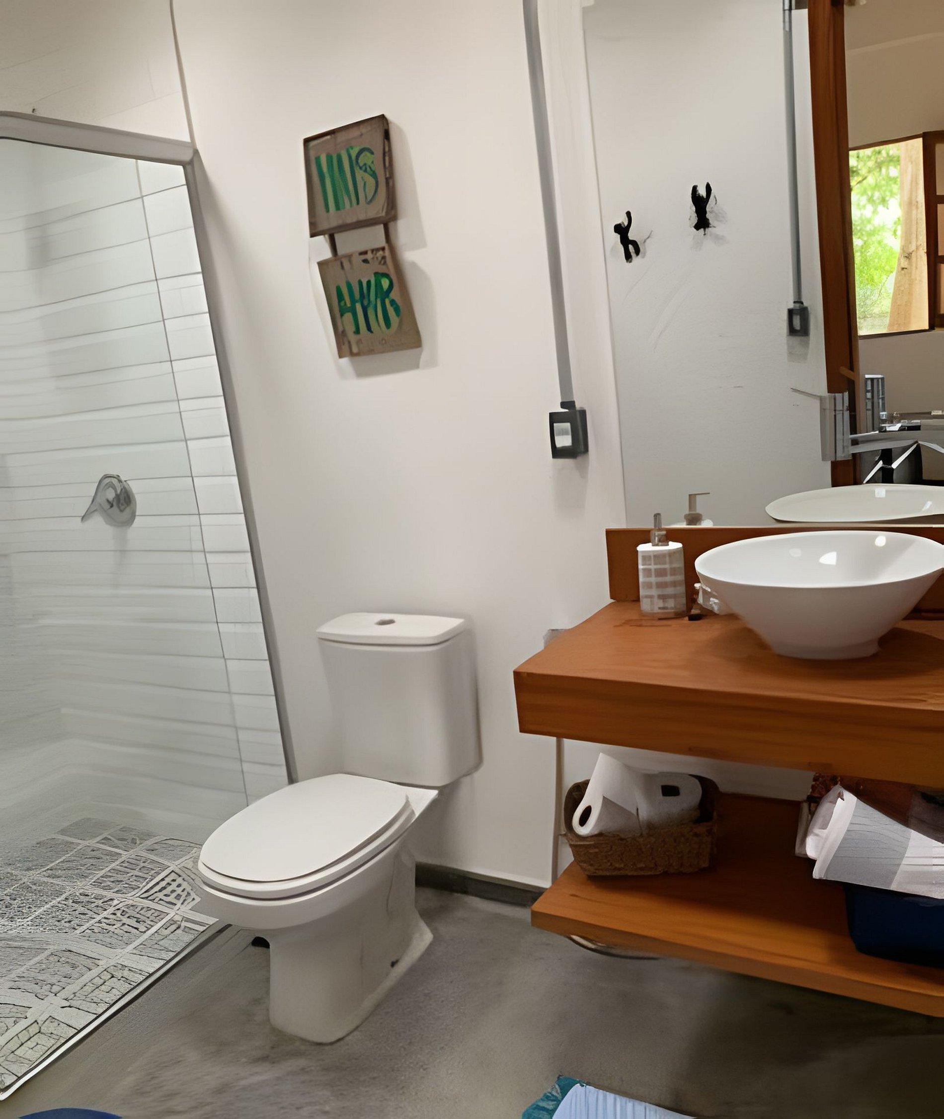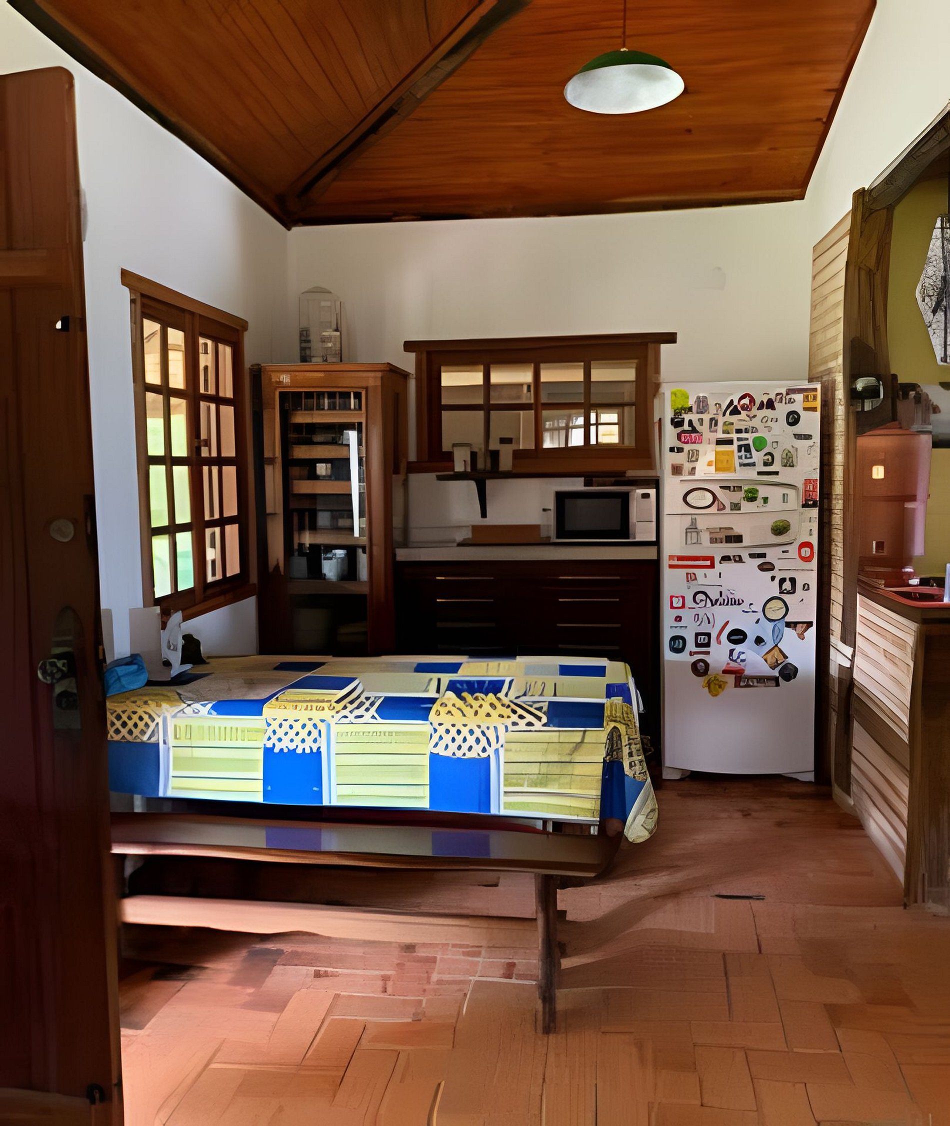 Alguns quartos da casa utilizam banheiro compartilhado, enquanto os chalés e a suíte do segundo andar possuem banheiro privativo. Essas informações estão sempre descritas individualmente em cada acomodação.