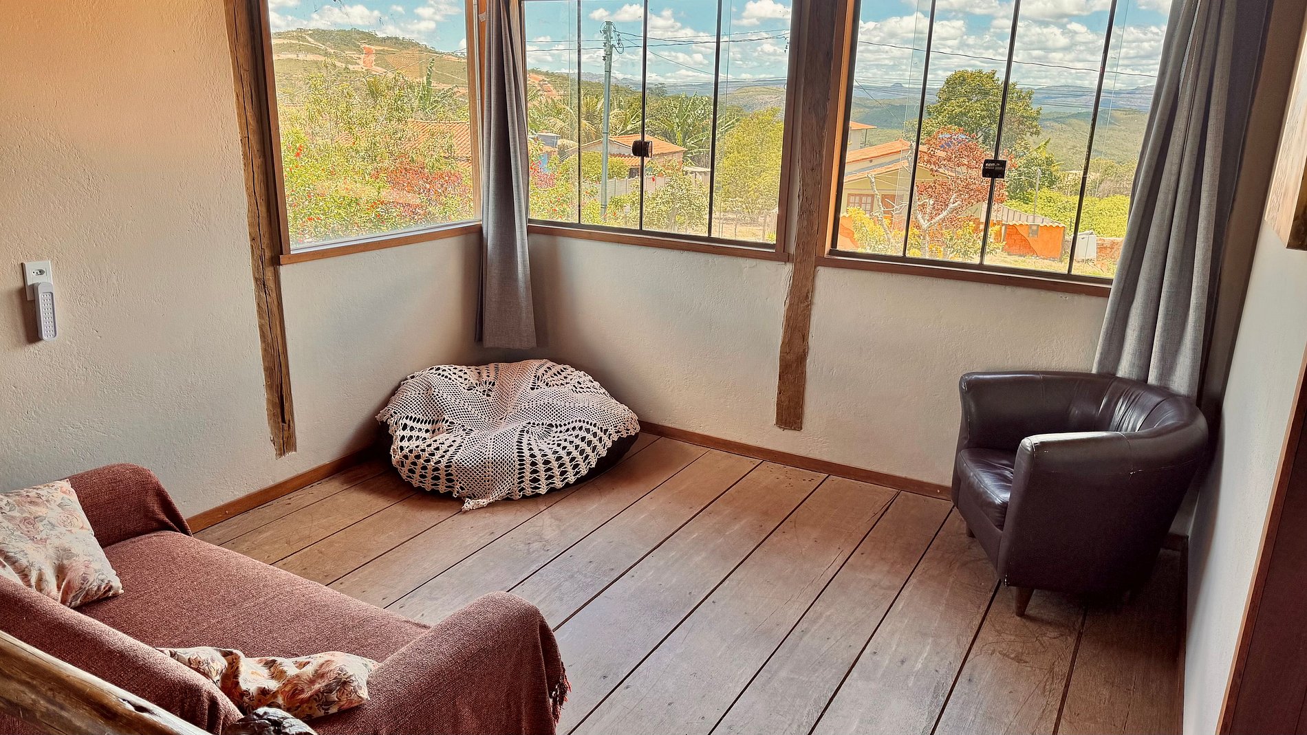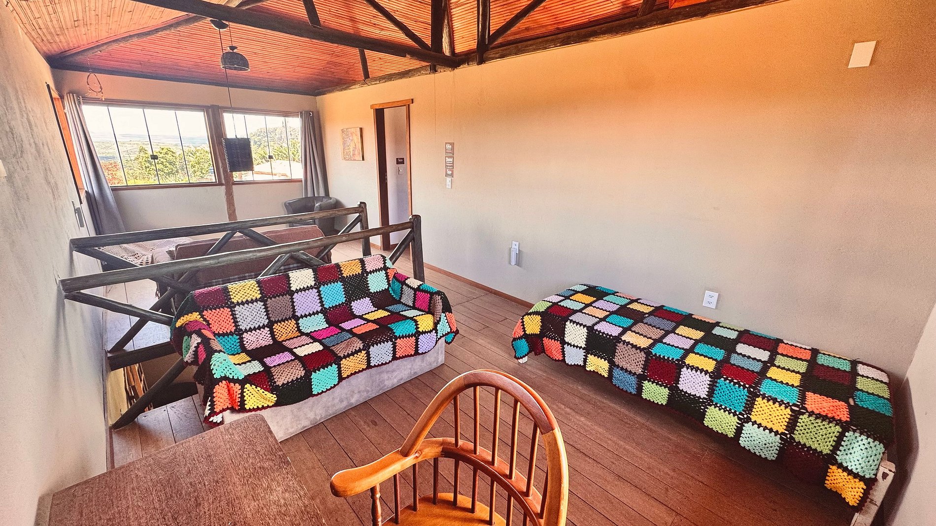 O diferencial do local está na integração com a natureza: jardim, varanda e uma bela vista que convidam ao descanso, à contemplação e a momentos agradáveis ao ar livre. A proximidade com trilhas e cachoeiras torna a estadia ainda mais completa, perfeita tanto para quem busca sossego quanto para quem deseja aventura.